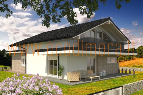 Casa prefabbricata in legno sup. lorda: ca. 120 m2, di cui 14 m2 di portico.